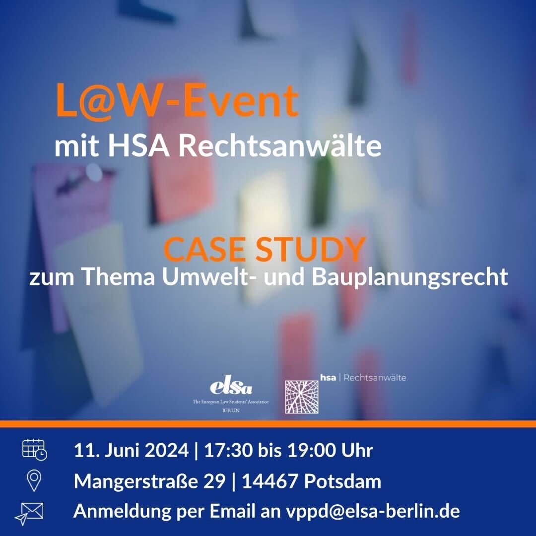 Du möchtest den Arbeitsalltag von Anwält:innen durch die Lösung von anonymisierten Mandaten kennenlernen? Dann sei bei dem L@W-Event mit HSA Rechtsanwälte dabei!